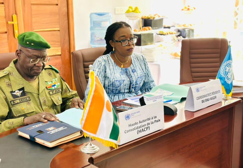 Le Président de la Haute Autorité à la Consolidation de la Paix (HACP), le Général de Brigade Amadou DIDDILI, a coprésidé la réunion du Comité de pilotage du Fonds pour la Consolidation de la Paix (PBF), aux côtés de Madame Mama Keita, Coordinatrice résidente du Système des Nations Unies au Niger.